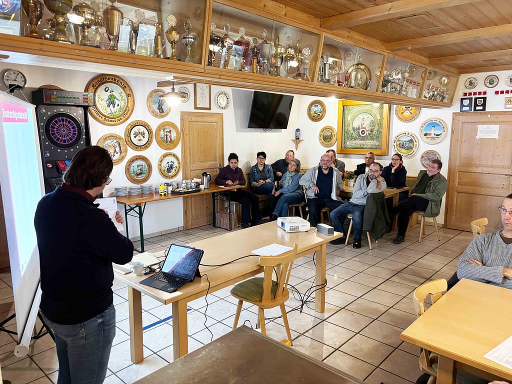 Vorstand Hermann Kammerer begrüßte den Referenten und alle Teilnehmenden herzlich, bevor es in den theoretischen Teil ging. Und der hatte es in sich: In rund sechs Stunden vermittelte Fleischmann alles, was man über die Gewinnung, Verarbeitung und Vermarktung von Honig wissen muss – vom Flug der Biene bis zum etikettierten Glas im Regal.
